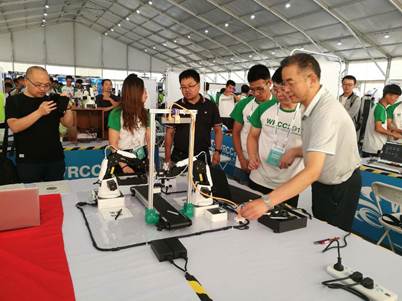 2019年8月20日,由北京市人民政府、工业和信息化部、中国科学技术协会主办,中国电子学会等单位承办的2019世界机器人大会在北京亦创国际会展中心召开,机器人工业设计大赛作为世界机器人大赛的重要赛项之一同期举行。中共中央政治局委员、北京市委书记蔡奇,全国政协副主席、中国科协主席万钢出席开幕式。北京市市长陈吉宁,工业和信息化部部长苗圩,中国科学技术协会党组书记、常务副主席、书记处第一书记、中国科学院院士怀进鹏出席开幕式并致辞。机器人工业设计大赛邀请到10位机器人领域国家级专家学者担任评委,来自全国5大赛区,近60所高校及300余位指导教师、领队、参赛代表,我校两支参赛队参加了本次冠军挑战赛。