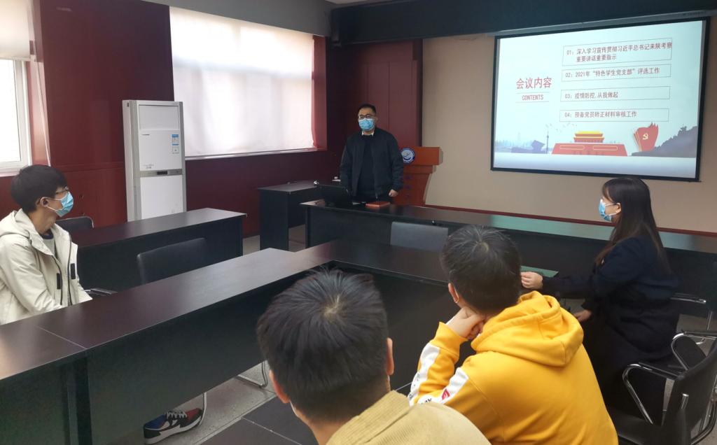 活动中,支部组织委员任昊领学了习近平总书记来陕考察重要讲话重要指示精神有关内容。支部书记王晓康对近期支部建设等相关工作进行了安排。与会师生结合近期工作学习作了交流发言。尹弘在交流中强调,疫情防控,人人有责,当前校园疫情防控严峻形势,希望支部全体党员坚持问题导向、过程导向和目标导向,科学统筹,妥善安排学习生活,充分发挥支部的战斗堡垒作用。一是要从点滴做起,从身边做起,带引同学们切实履行在校生义务,做好日常健康监测,认真执行“每日健康打卡”;二是提醒身边同学正确使用口罩、勤洗手,做好个人卫生防控;带领班级同学加强宿舍卫生整顿,做好宿舍通风、消杀,打造整洁卫生的宿舍生活环境;加强锻炼,增强免疫力;三是坚持“非不必要不外出”,少走动、少聚集,做到“保持一米社交距离”,发现异常及时报备,帮助身边同学切实提高疫情防控警觉,为确保学院教育教学秩序正常做出贡献。