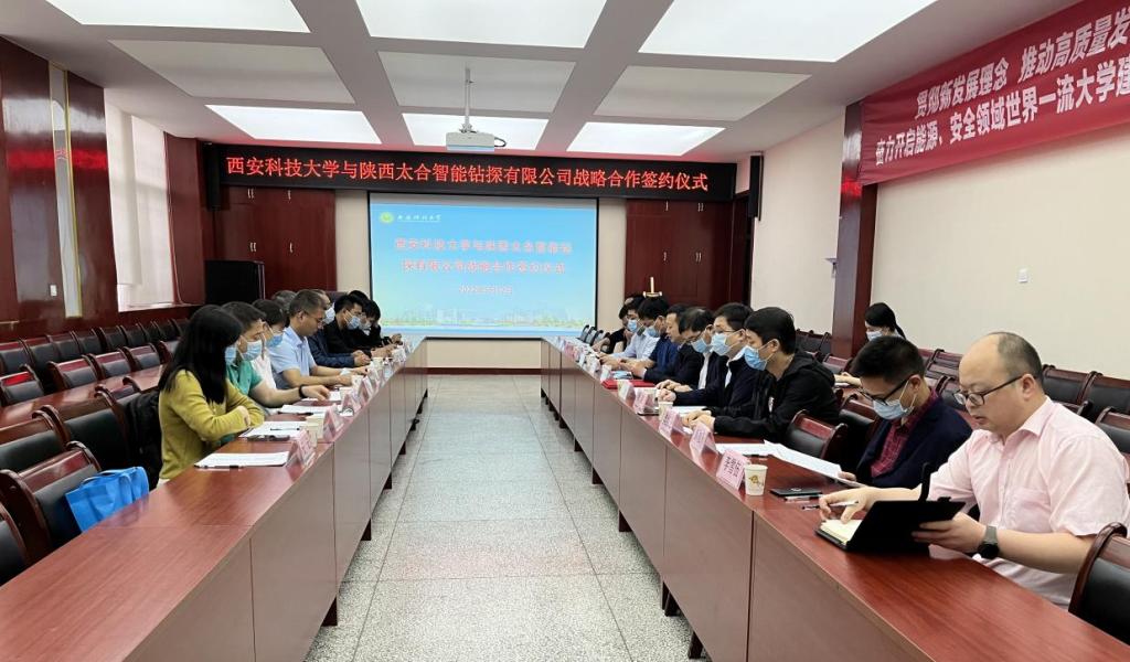 5月12日上午,西安科技大学与陕西太合智能钻探有限公司战略合作签约仪式在雁塔校区我院会议室举行。副校长黄英维、教务处处长张旭辉、科技处副处长肖鹏,我院院长曹现刚,陕西太合智能钻探有限公司董事长王义红、副总经理彭腊梅、总工程师薛向宇、副总工程师曹海涛以及我院各系教师代表参加活动。我院党委书记张金来主持活动。