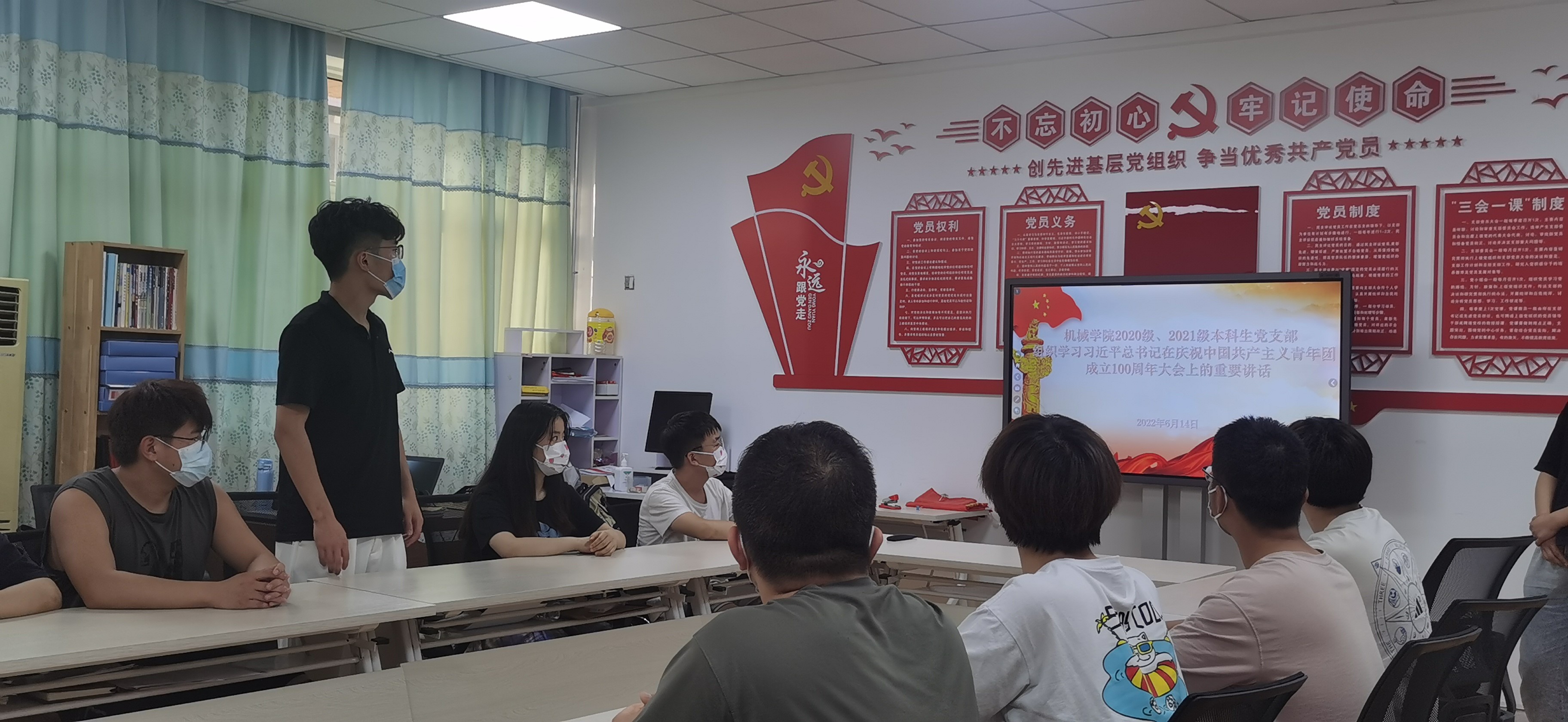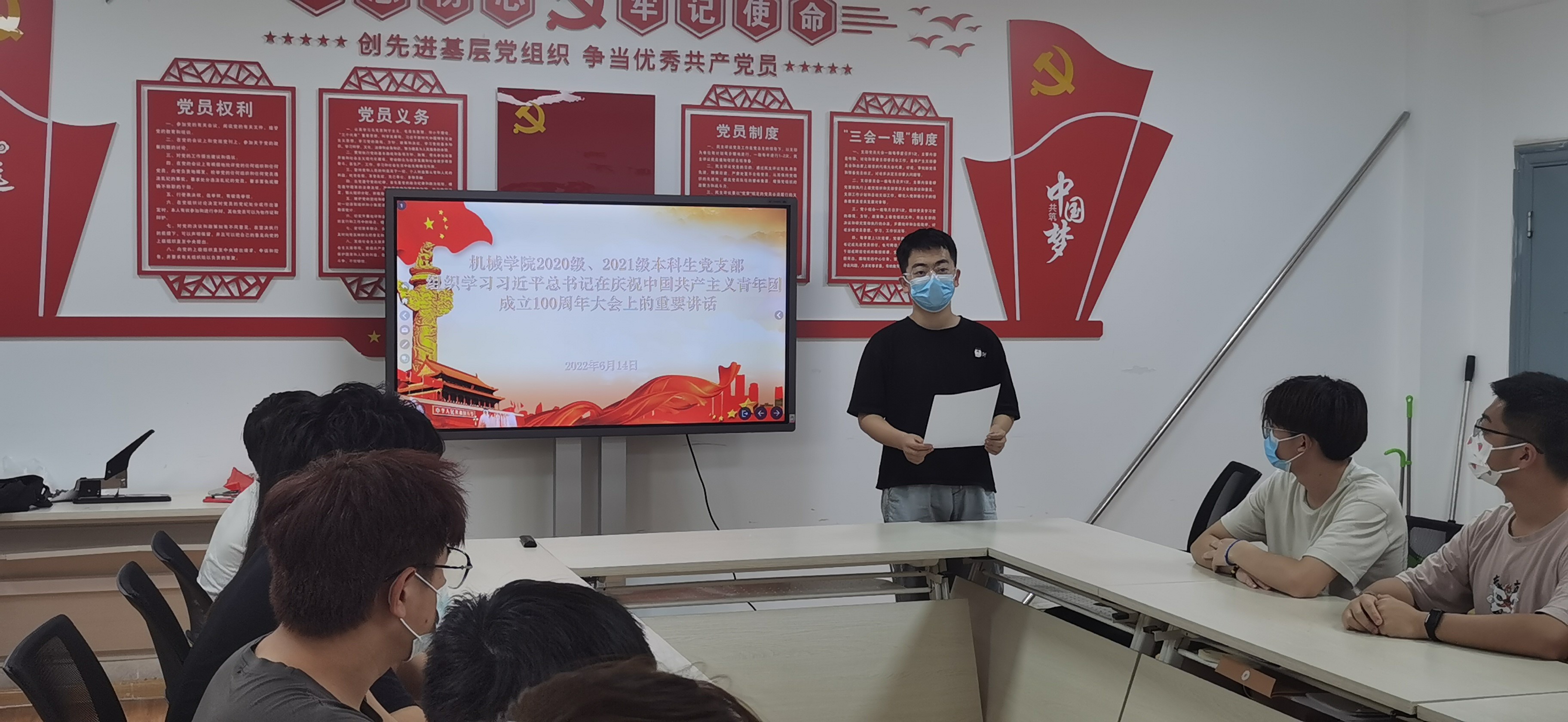 6月14日下午19:00,我院2020级、2021级本科生党支部召开主题党日活动,组织学习习近平总书记在庆祝中国共产主义青年团成立100周年大会上的重要讲话。会议由组织委员刘攀主持,支部16名发展对象参加本次活动。