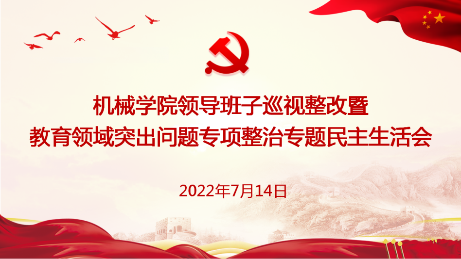 7月14日上午,我院党委召开巡视整改暨教育领域突出问题专项整治专题民主生活会,校党委委员、副校长黄英维参会指导并进行点评。我院领导班子全体成员,组织员、办公室主任参加会议。