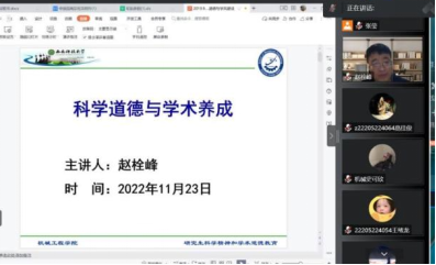 11月23日晚,我院举办主题为“科学精神与学术道德”的线上教育讲座,讲座由我院副院长赵栓峰教授主讲,2022级研究生和教师参加了本次学习。