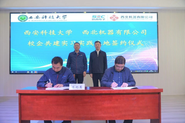 活动中,西北机器有限公司党委书记、董事长党胜茂致辞表示热烈欢迎,并从历史沿革、基本概况、服务领域、优势特色、科研创新、校企合作等方面介绍了公司发展建设的情况。黄英维介绍了学校的办学历史及特色,产学合作等方面的基本情况,并就人才培养和就业前景进行详细说明,对本次校企合作表达了美好祝愿。随后,我院与西北机器有限公司共同签订了“校企共建实习实践基地”协议以及“大学生实习实践基地”揭牌仪式。