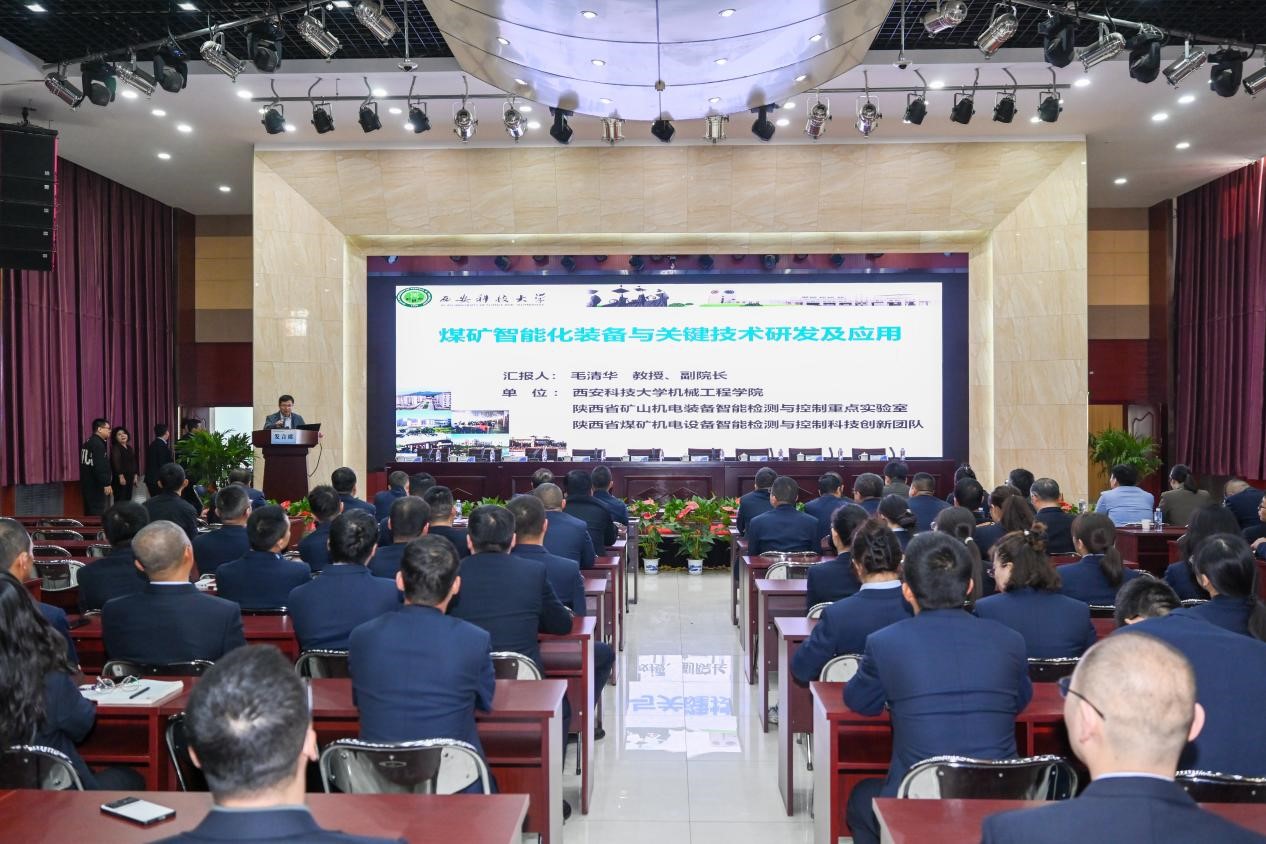 仪式上,陕西银河煤业有限公司董事长张中华致辞表示,此次共建煤矿智能装备科技创新实验室标志着校企双方在推动教育科技人才“三位一体”改革、深化产学研深度融合方面迈出重要一步,将助力银河煤业开发有限公司煤矿智能化发展。9999js金沙老品牌副院长毛清华作为校方代表做了“煤矿智能化装备与关键技术研发及应用”报告,详细介绍了学院的基本情况和学院在煤矿智能化装备与关键技术研发方面科研进展,未来将通过联合实验室平台进一步推动学院科技成果在银河煤业开发有限公司转化。