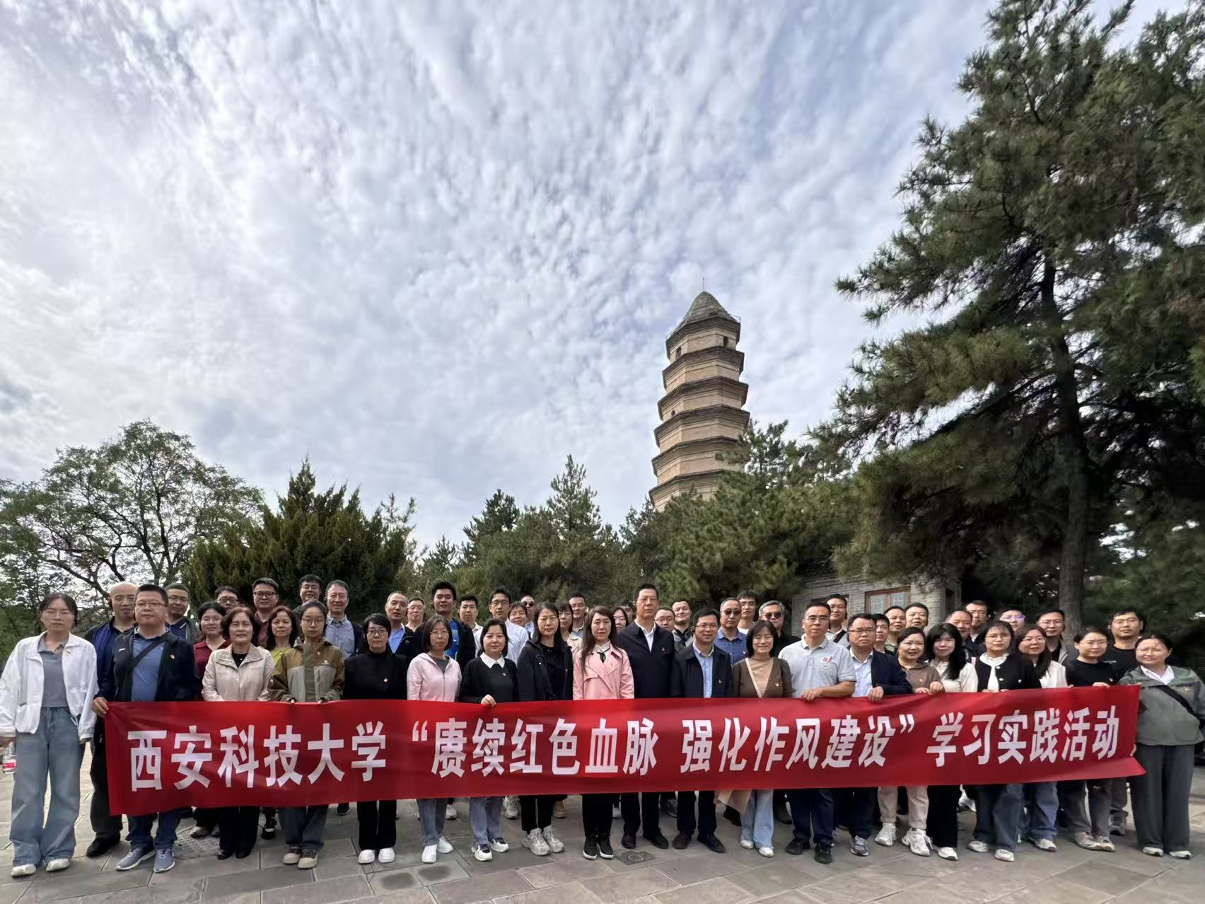 为深入学习贯彻党的二十大和二十届二中、三中全会精神、习近平总书记历次来陕考察重要讲话重要指示精神以及全国、全省教育大会精神,深入贯彻中央八项规定精神学习教育,进一步激励全体教师不忘立德树人初心、牢记“为党育人、为国育才”使命,以实际行动积极投身教育强国建设实践,9月20日至21日,我院和地环学院党委负责人带队,组织50余名教师前往革命圣地——延安,开展为期两天的“赓续红色血脉,强化作风建设”学习实践活动。