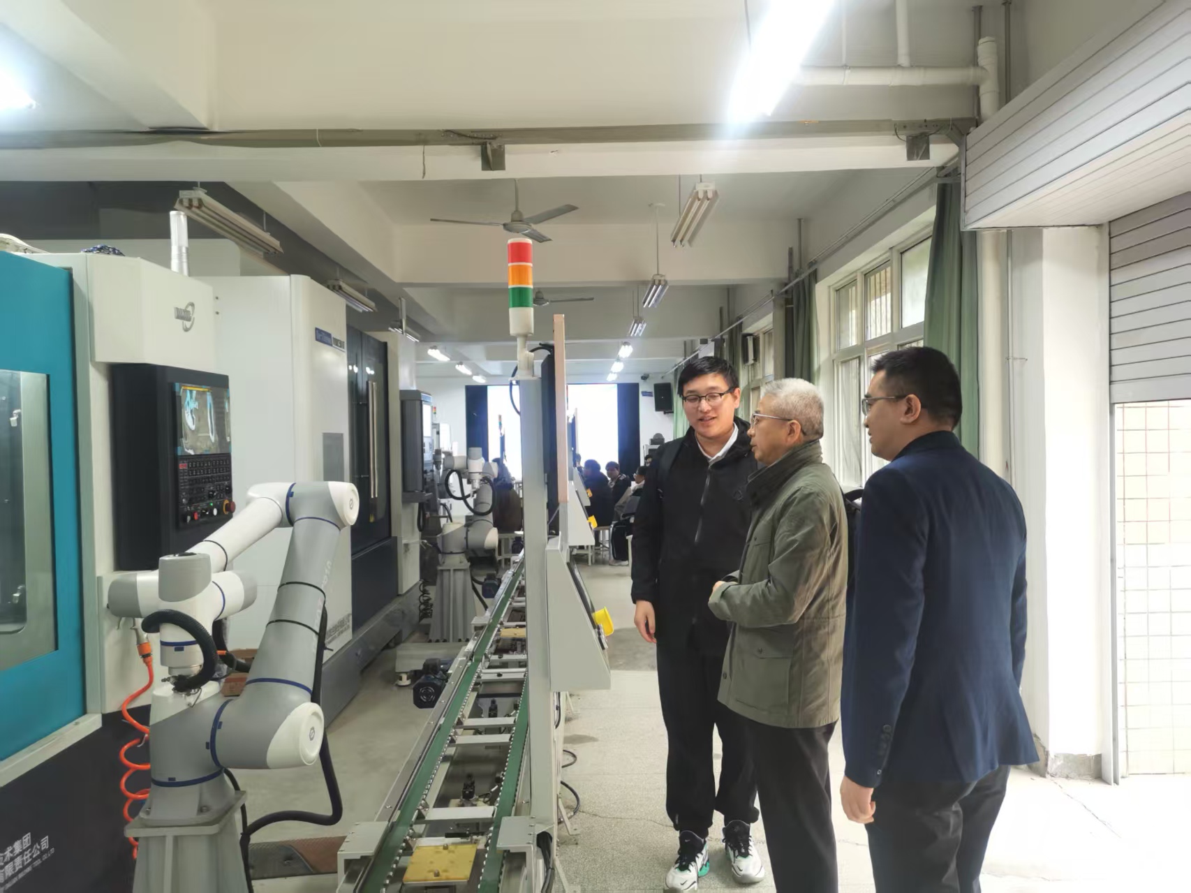 座谈会后,学院党委副书记尹弘陪同徐海峰一行参观了机械工程实验教学中心智慧实验室教学模块相关学院创新实验室,并就创新人才培养进行了沟通交流。