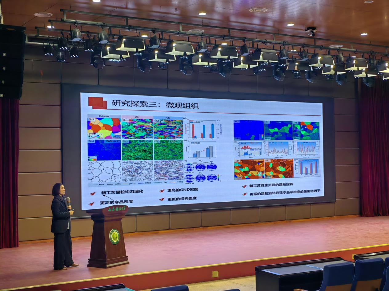 张莹副研究员从航空发动机典型零件的结构和工艺特点入手,介绍数控加工技术面临的三大挑战:工艺系统的复杂性、非一致性与随机性、无法准确建模预测,引出智能加工技术,着重介绍其技术内涵与途径。随后,结合近年来团队所开展的研究工作,分享了复杂薄壁零件的智能加工技术应用5个案例:加工过程的状态监测;零件包容性分析与数字化定位;数据驱动的钻孔优化;压气机叶片综合变形误差补偿;整体叶盘的自适应修复加工技术。最后,指出了智能加工技术发展方向。方秀荣教授聚焦两大前沿课题:“高能瞬态辅助塑性成形调控机制”与“大直径X80管材推弯感应加热多场耦合”,前者是解决难变形材料(如钛合金、高温合金)复杂构件成形的颠覆性技术,后者则是保障油气输送管道关键部件(如大直径弯管)质量的核心基础。通过揭示多物理场耦合下的材料变形规律与工艺参数优化方法,为我国高端装备制造提供理论支撑与技术参考。
