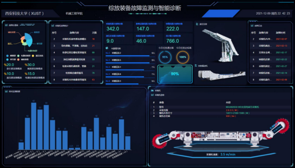 会议期间,西安科技大学矿山装备智能运维团队联合陕西章启睿智能科技有限公司研发成果“矿山装备智能监测与运维系统”成为现场瞩目的焦点。该成果融合了多模态感知、人工智能算法与数字孪生技术等,可实现对矿山装备实时运行状态的精准感知、故障预警与预测性维护等核心功能,显著提升我国矿山开采本质安全水平与开采装备运行维护效率。