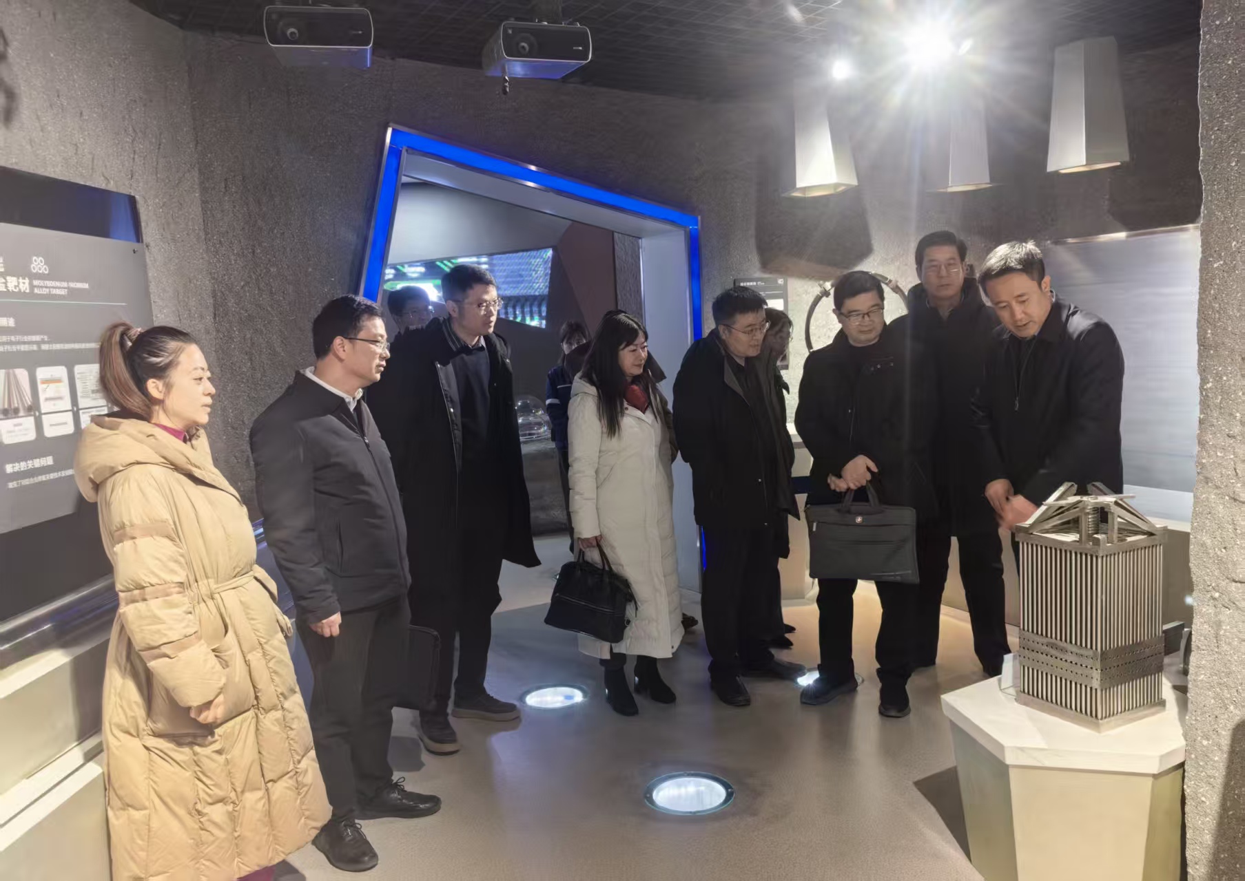 交流座谈会上,大家观看了企业宣传片。周新文致欢迎辞,郭小平介绍到访目的。毛清华介绍了学院基本情况及近年来取得的成绩,并对学院在煤矿智能开采及智能制造、金属材料成型与表面处理方面优势进行了详细介绍。曹现刚希望双方优势互补,在物料自动搬运机器人、加工生产过程自动化与远程监测技术、材料表面修复与处理、材料无损检测与评价、数字化工厂升级改造等方面开展深入合作,并欢迎金堆城钼业股份有限公司到我校招才引智推动公司发展。周新文希望双方加强交流,在技术开发、科研项目合作申报、人才培养与招聘、学生实践基地建设等方面深入合作,并表示双方在智能运维平台开发、智能化关键技术攻关、智能制造与金属材料等方面具有广阔的合作空间。活动中,大家参观了金堆城钼业股份有限公司建设展厅、钼粉及相关产品加工制造车间、劳模联合创新工作室等。