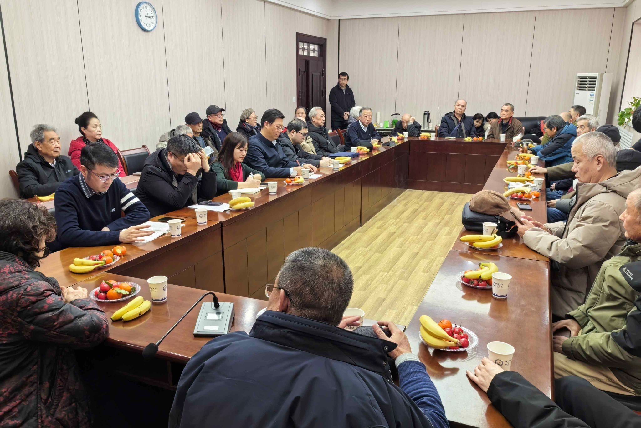 1月30日下午,9999js金沙老品牌离退休教职工春节慰问座谈会在雁塔校区南院离退处会议室举行。学院领导班子成员、党委委员、工会主席、办公室主任与离退休教师代表近40人欢聚一堂,笑语盈盈、暖意融融,共话学院发展。座谈会由学院党委书记郭小平主持。