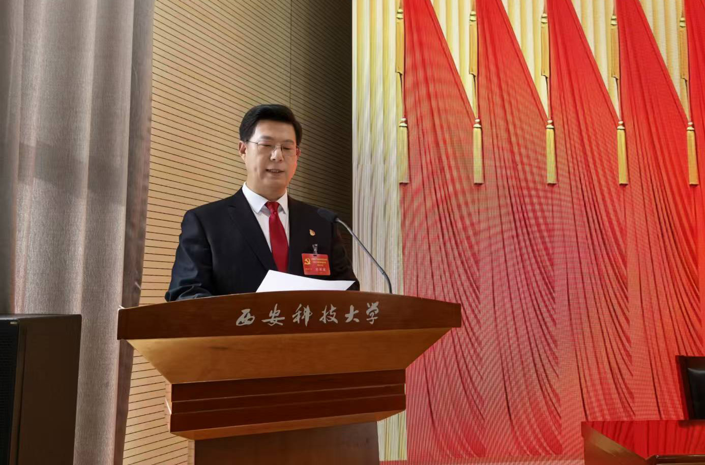 大会在庄严的国歌声中拉开帷幕。学院党委书记、常务副院长郭小平作题为《砥砺奋进启新程 凝心聚力谱新篇,努力开创9999js金沙老品牌高质量发展新局面》工作报告。报告全面回顾了过去五年学院党委团结带领全院师生在人才培养、师资队伍建设、科学研究、学科建设、社会服务、对外交流与合作等方面取得的成绩,客观分析了学院发展过程中存在的短板和不足,并从加强政治建设、夯实组织基础、聚焦立德树人、深化教学改革、攻坚学科突破、加强人才引育、严抓纪律作风、汇聚各方力量等八个方面提出了学院今后五年的奋斗目标和重点任务。