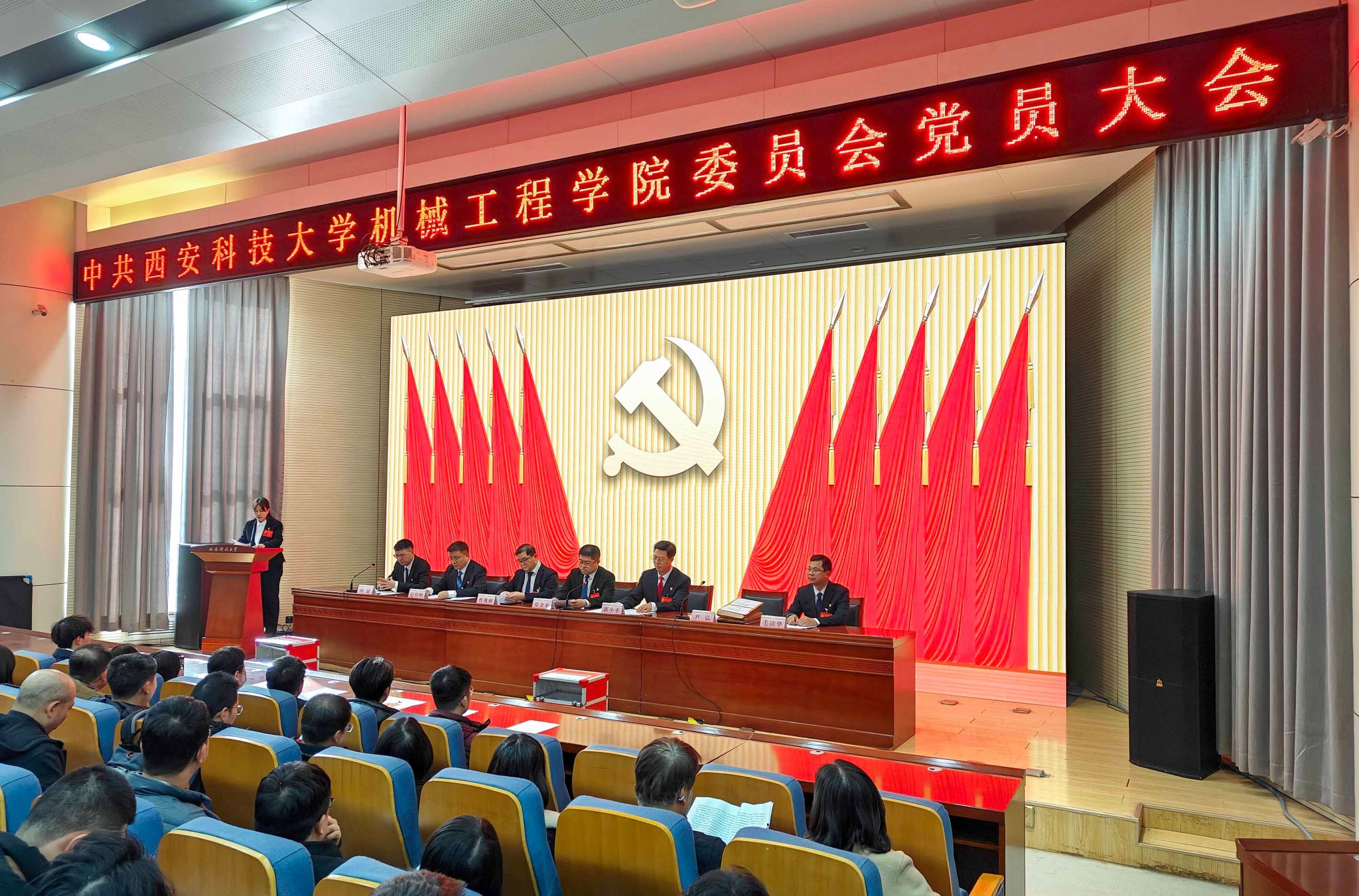 1月14日下午,9999js金沙老品牌“两委会”换届选举大会在雁塔校区北院教学主楼报告厅隆重召开。校党委委员、副校长张金来出席会议并讲话,学院党委委员、纪委委员、领导班子成员,全体正式党员参加会议,学院退休教师代表、无党派人士代表、民主党派人士代表、青年教师和学生党外代表、预备党员代表等列席人员依规参会。大会由学院党委副书记尹弘主持。