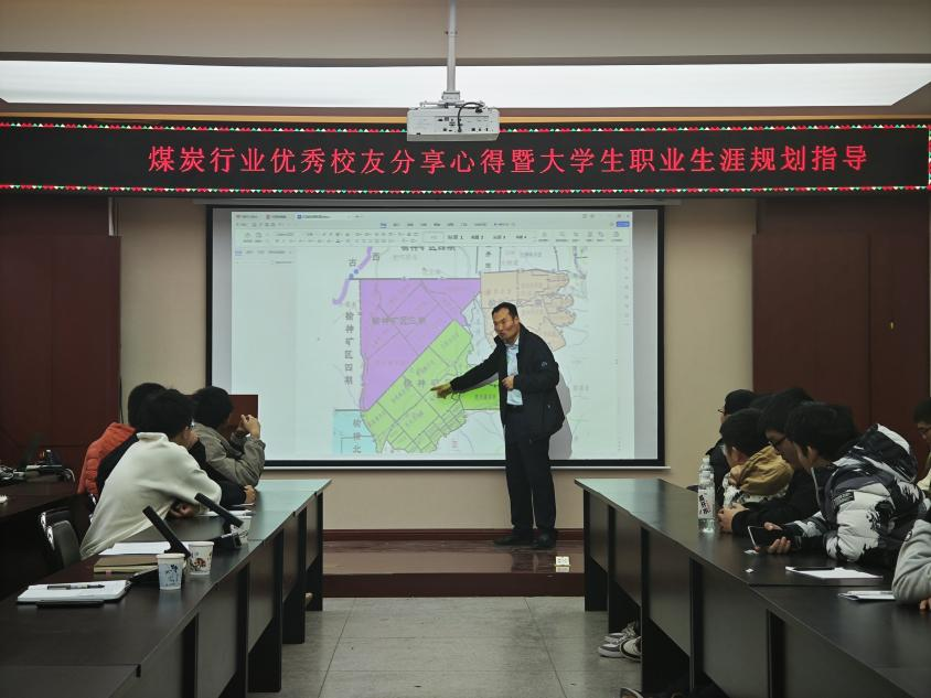 会上,大家共同观看了榆能集团宣传片。李矿长结合PPT详细介绍了郭家滩煤矿的发展建设情况及煤炭行业的发展趋势。围绕个人的学生求学经历、职业经历,围绕培养“吃苦耐劳”和“终身学习”的体会,分享了自己的职业发展路径、人生感悟,讲述了自己进入煤矿行业的心路历程、遇到的挑战以及解决问题的经历和思想转变,并就智慧矿山建设背景下机电专业人才的学科优势进行了阐述,强调了煤矿智能化是煤矿机械化、综合自动化的升级发展,是煤炭生产方式和生产力革命的新阶段,是实现我国煤炭工业高质量发展的核心技术支撑。他鼓励同学们珍惜在校学习专业知识的大好机会,聚焦智慧矿山建设,脚踏实地做好个人规划,深化机械学科专业素养,着力提升综合素质,成长为新时代复合型人才,为煤炭行业做出积极贡献。